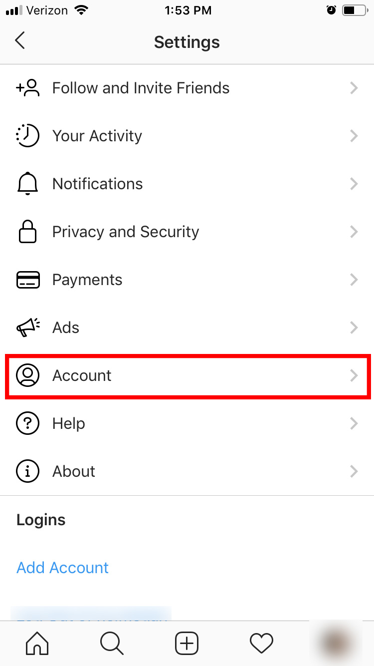 - Tap “Account”.